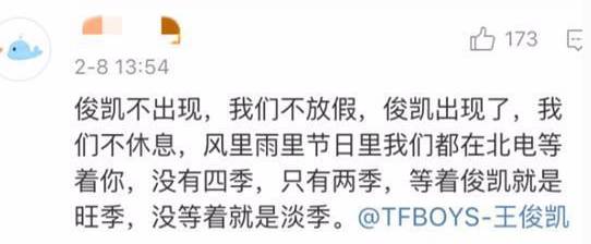 粉丝还喊话:“俊凯不出现,我们不放假,俊凯出现了,我们不休息。”