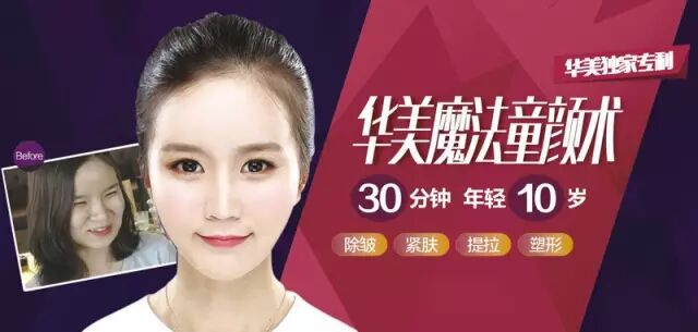 华美魔法童颜术,是利用医学的立体架构原理,运用点、线、面3D交错植入方式,根据面部下垂老化的纹路方向,将提拉回春线多方向、多点位地作用于真皮下层和皮下组织之间,提拉、紧致老化肌肤,彻底改善老化下垂肤质。让肌肤恢复年轻紧致的最佳状态。