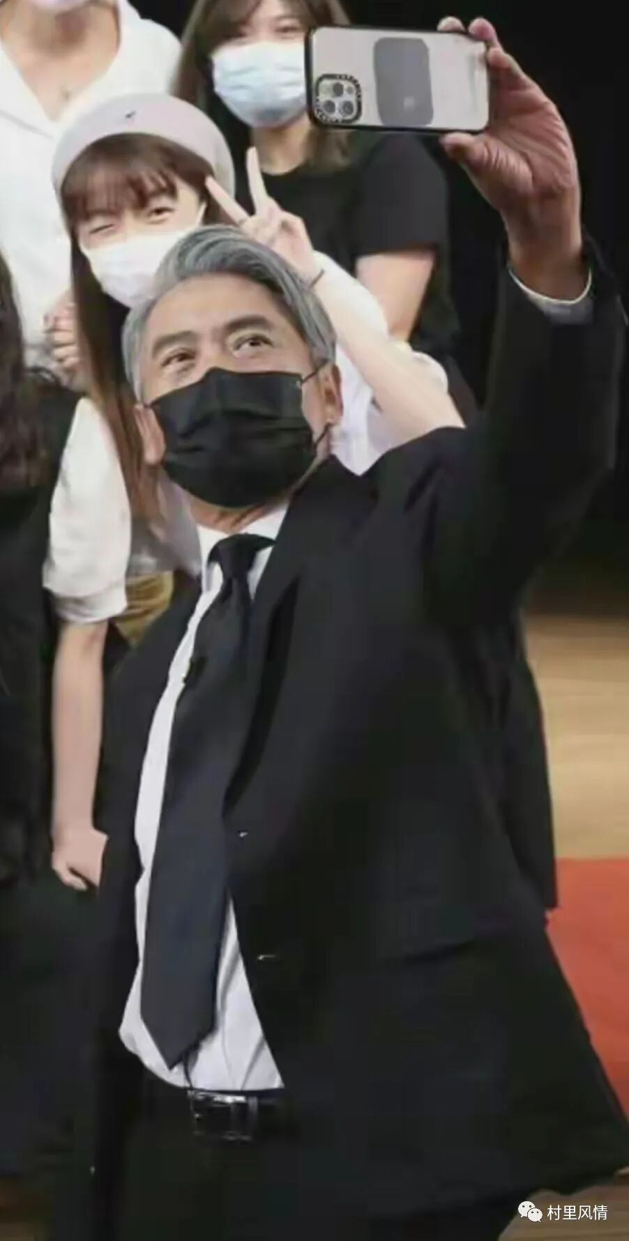 说实话像周润发这个年龄阶段的男性,很大一部分都已经有啤酒肚,并且身材出现了明显的发福状态,但是周润发的身材却保持的犹如年轻小伙子一样,加上182的身高优势,显得体态均匀、挺拔高大,整个人看上去非常威猛,完全不像即将踏入古稀之年的老人,举起手机亲密的和观众拍照合影,留着一头白发亲和力十足!
