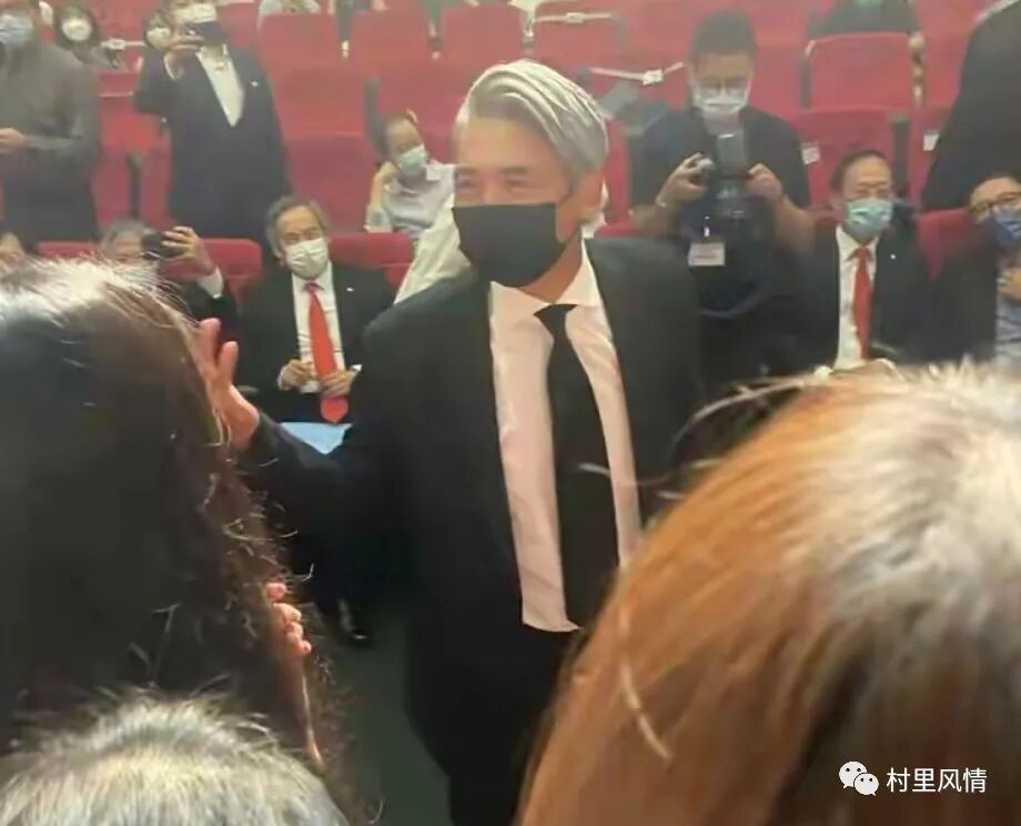 周润发老了仍是男神,穿一身西装腰杆挺笔直,白发不染气场也强大