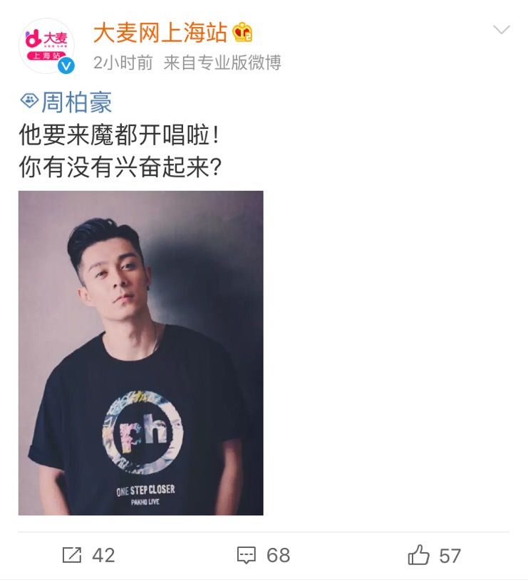 大麦网上海站在今天早上发布了微博,透露了上海站的消息。