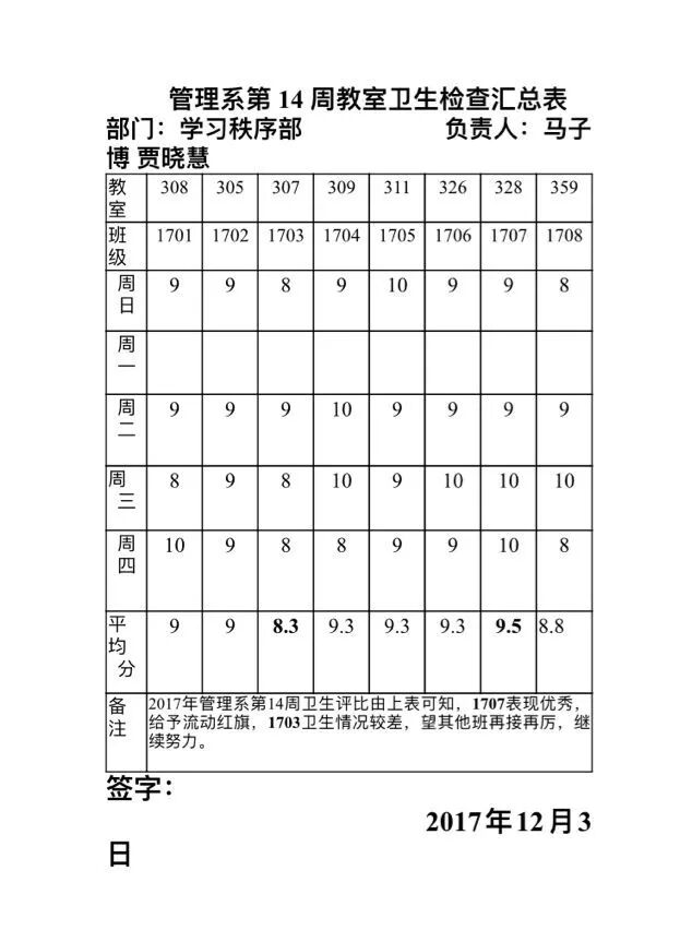 第十四周教室卫生评比中1707班脱颖而出,拿到本周的流动红旗,望各班都能再接再厉!