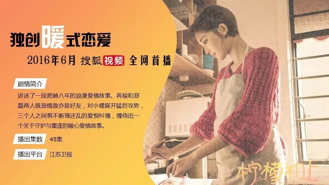 《柠檬初上》是由好剧影视、东阳福添影视联合出品的暖心励志时尚爱情剧,由刘俊杰执导,刘恺威、古力娜扎、孙艺洲、张杨果而等联袂主演。该剧讲述了一段跨越八年的浪漫爱情故事,于2016年5月9日江苏卫视幸福剧场上星播出。