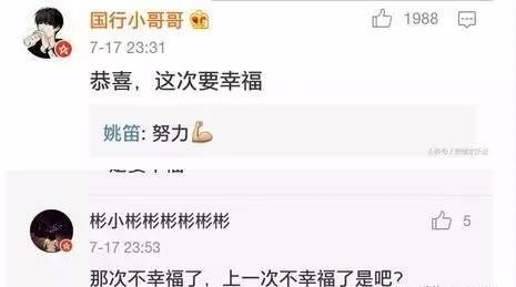 很多依然喜欢她的粉丝们纷纷发来贺电,希望姚笛这次一定要幸福,说道这一次,那就是上一次的恋爱并不幸福了。姚笛也首次回应网友会努力幸福。3年过后,姚笛终于能走出文章的影响,寻找下一段恋情,而对于过往的那段伤痕累累的恋情,姚笛的总结就是不幸福,正在努力通往幸福的道路上。