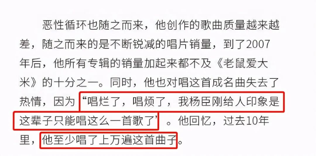 其实在《老鼠爱大米》大火后,他至少每年发布一张专辑如《妹儿爱我》等,但这些歌曲却都石沉大海。因着时代在改变,这些歌曲已经不再符合听众喜好,所以销量也远远不如成名曲。