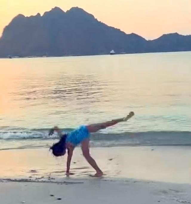 照片更炸 先看海边那组 母女俩手牵手 光脚在沙滩上狂奔 章子怡跑得比醒醒还疯 脸上的笑 甚至比女儿还大 你说她是妈 我信 你说她是闺蜜 我也信 关键是 这种没包袱的快乐 成年人真的少见
