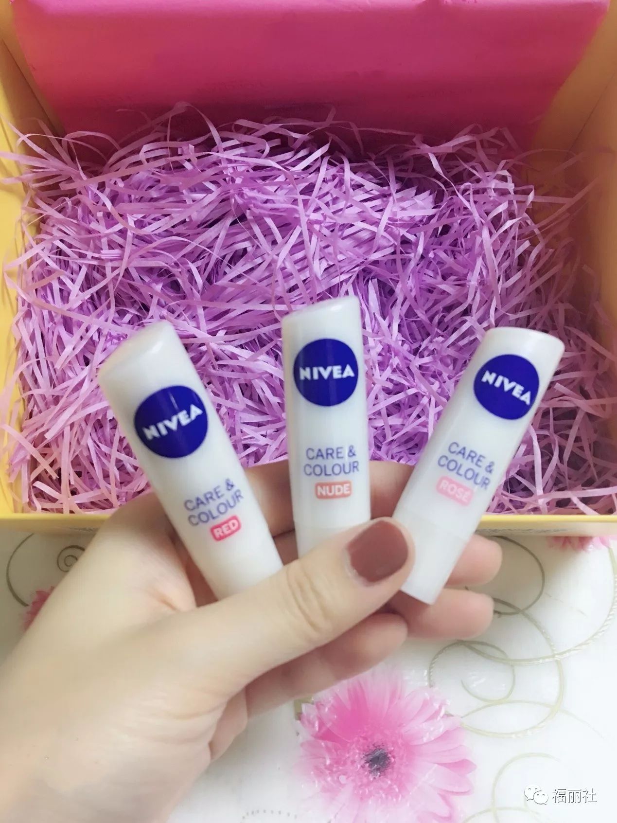 很开心能收到福丽社送的妮维雅润唇膏,一送送3支,而且还有一个超美的限量手包,好惊喜呀!从来不写买家秀的我忍不住夸夸这三个小可爱了!