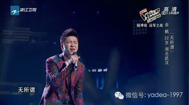 9月26日夜,《中国好声音》第三季进入队内冠军之争阶段,来自武汉的余枫力挫夺冠热门陈永馨,最终成为杨坤组冠军。接受群访时戏称,走到这一步,很多人说他是“黑马”。