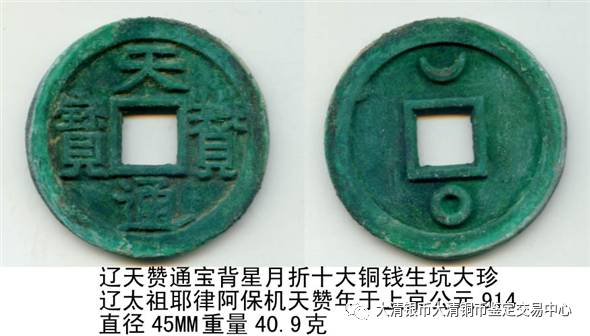 辽天赞通宝背星月折十大铜钱生坑大珍价值:240万----310万.