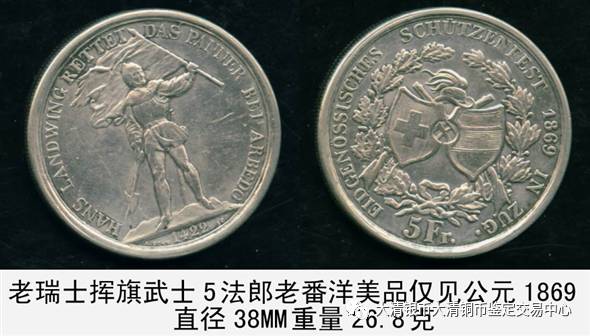 老瑞士挥旗武士5法郎老番洋美品仅见价值:400万----500万.