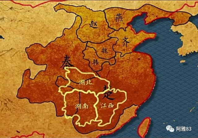 周朝这些被封的诸侯国基本都集中在黄河流域,这里水源充足、土地肥沃,有利于生产,但是大家都挤到一块儿了,发展空间自然受到了很大限制,同时又在天子脚下,想有点小动作都不容易。楚国是子爵,爵位里比较低的一级,被封在南方,建国在荆,也就是今天的荆州。那时候的南方是荒芜之地,没人关注,也没人和它挤,反而促进了楚国的发展,楚国吞并了很多小国,迅速强大起来。