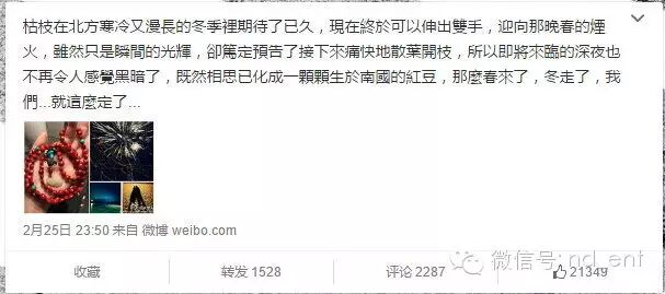 有网友留言道:“看朱孝天2.25的微博图片项链加红指甲就知道是你了,还有帽子,我不做侦探真是可惜了,赞我!”而韩雯雯的微博从2月19日开始改作繁体字,疑似为朱孝天而改。