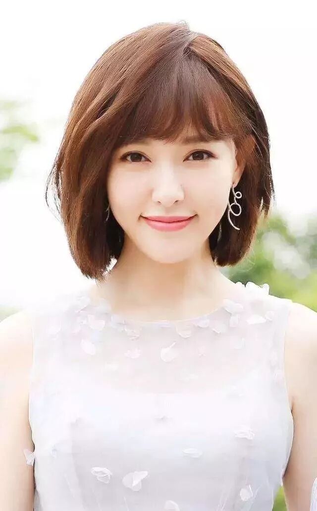 ▲刘海被烫成了一分卷,发型更有体积感,这款短发则从清纯变身为优雅甜美了。