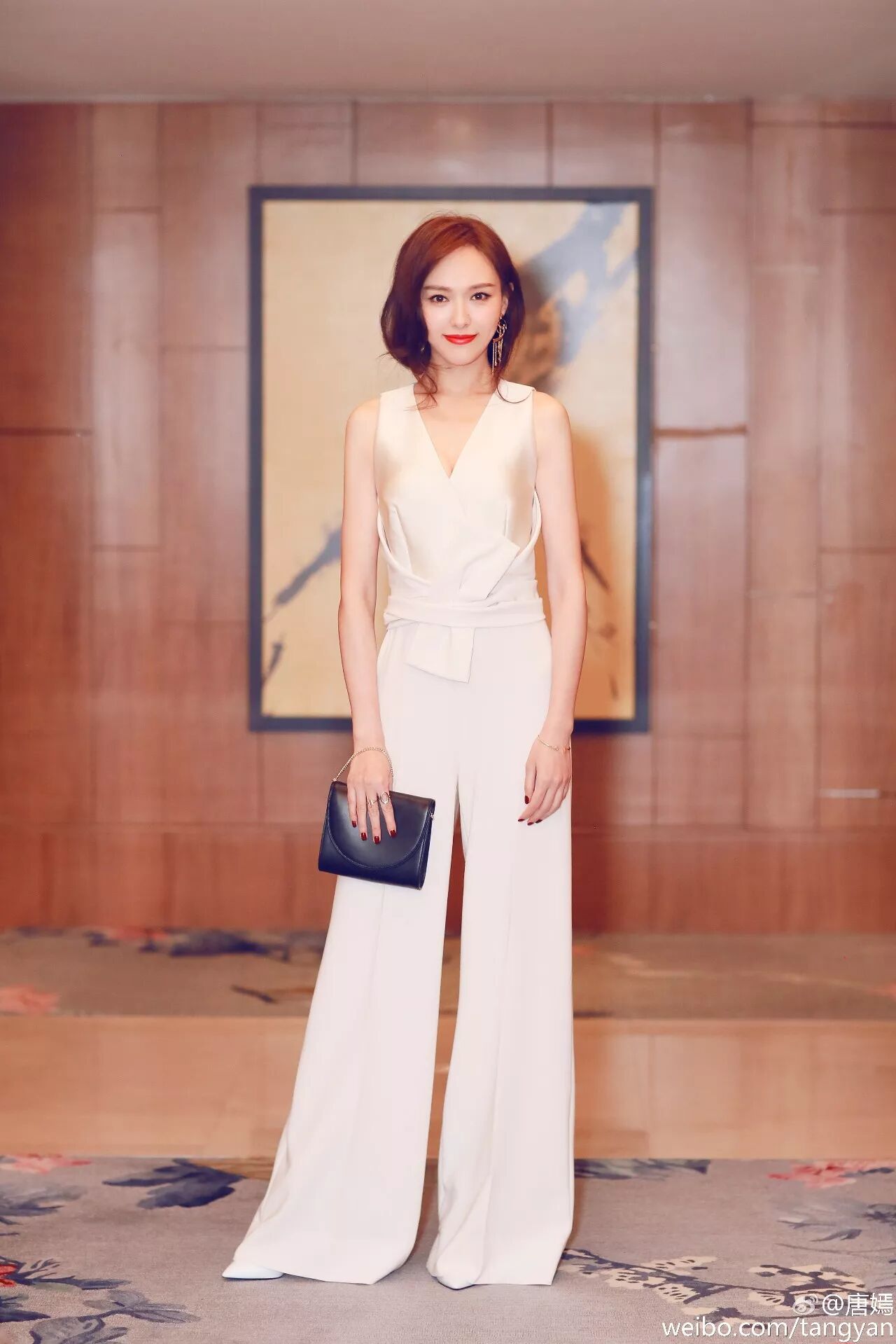 除了戴假短发凹造型以外,唐嫣还会打造“伪短发”。☟