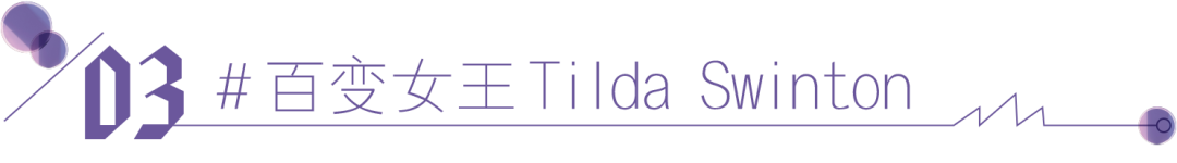 聊到中性风或者说无性别风格,瑞小美非常喜欢的演员Tilda绝对是不能忽视的,堪称神一般的人物。