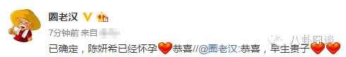 就在陈妍希婚期的消息曝光出来没多久,微博上就有博主爆料陈妍希已怀孕,目前陈妍希和陈晓方面还未回应传闻。