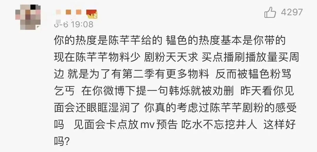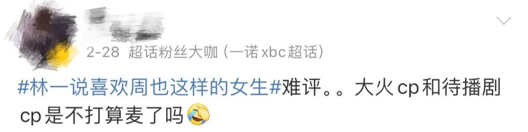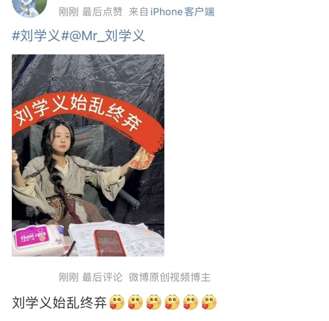 嗑cp讲究的就是那份独特性,糖一旦变成批发的确实就不那么对味了,刘郑cp粉的狂欢被迫暂停。加上马上《花间令》主演就要在官博直播,但郑合惠子作为友情出演不参与,于是cp粉紧急更改战场,跑到刘学义和刘学义工作室的评论区喊话他别端水,一副要他直播时务必在两对cp中做个决断的样子。