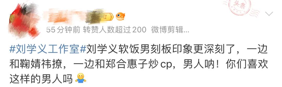 还有一些比较偏激的网友已经提前开始嘲刘学义了,说他吃两家红利的事,踩得还挺真情实感的,什么“中戏男之耻”啊,什么“软饭男”啊...