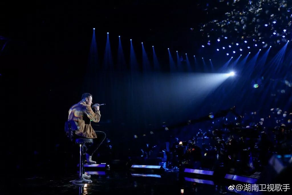 这次杨坤在《歌手》重新填词《I Love You》,演唱时放弃了略浮夸的舞台动作,安静坐在一个高脚椅上,整个人陷入到回忆之中,仿佛表演的对象不是观众,而是心中的那个人。