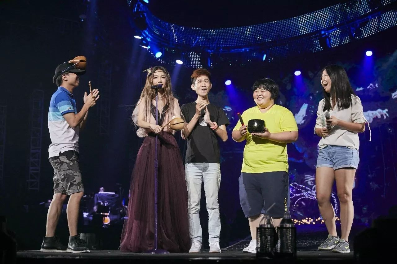 在今年《如果PlUS》的高雄场,田馥甄竟然把木鱼搬上了舞台,其实早在去年台北场,这个木鱼便为一位歌迷收过惊,当时田馥甄戏称自己为师姐。谁知今年“变本加厉”,师姐现场邀请多位歌迷上台,一边敲着木鱼一边念念有词的为歌迷加持。