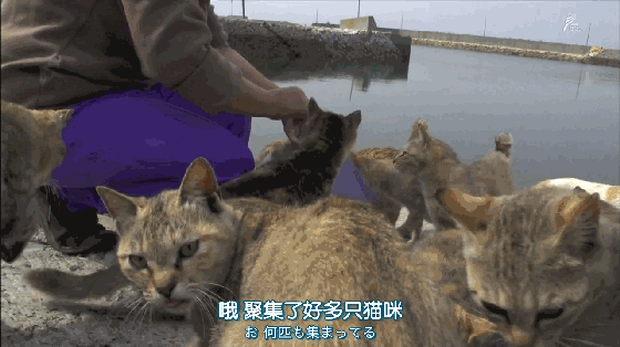 而这里的猫咪数量也很惊人,每当有居民将家中的饭菜拿出来时,成群的喵就出动了!