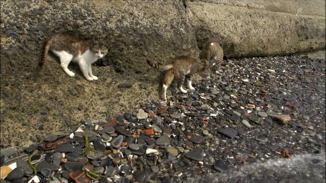 每当濑户内海的潮水褪去时,这群喵们就开始成群结队的来到海边…