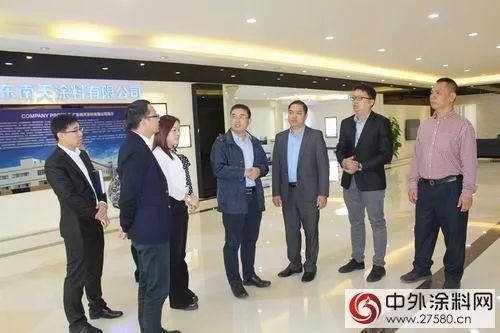 12月1日上午,广东省涂料行业协会会长陈冰、秘书长吕水列一行走访协会理事单位——广东南天涂料有限公司,在南天涂料张铨秋董事长、祝燕弟总经理、祝惠妹副总经理、销售部长祝健辉、技术部经理苏锦明等陪同下,参观南天1000平方全新多功能展厅、大规模标准厂房、现代化的先进设备。