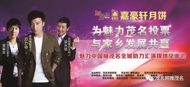 为全力支持茂名市参与中央电视台主办的大型城市文化旅游竞演节目《魅力中国城》评选活动,进一步激发广大市民积极参与网络投票的热情,推进投票活动持续进行,8月3日下午,茂名市嘉豪轩食品有限公司举办了一场“为魅力茂名投票,与家乡发展共赢”魅力中国城茂名全城助力汇演媒体见面会。记者从见面会上获悉,本次活动邀请到了香港情歌天王方力申、央视著名主持人梁永斌等明星参与,8月9日晚上在市区文化广场与市民们一起为茂名呐喊、加油!