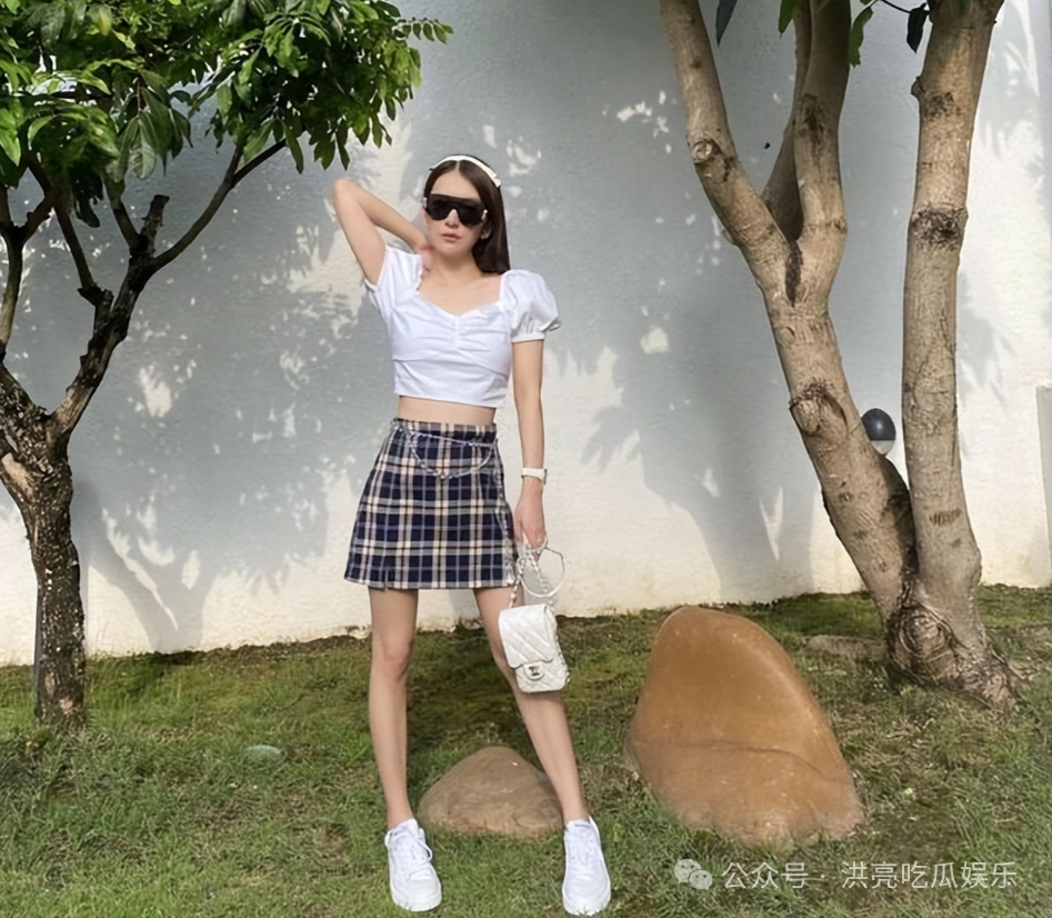 在"少女风"的装扮上,方媛也展现出独特的时尚品味,白色泡泡袖短上衣不仅能让肩膀显得更加宽阔,还能让脸型看起来更加精致小巧,搭配一条修身的格子裙,上窄下宽的版型既能突出腰身,又能展现出休闲感,整体造型干净利落又不失甜美。