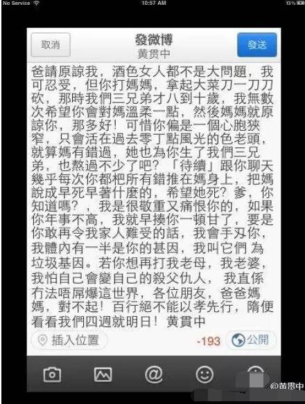 准确地说,是楼下邻居黄贯中。