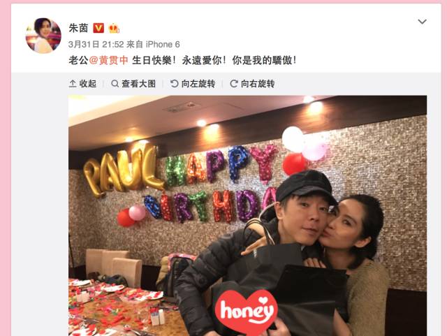黄贯中生日,她大喇喇表白“你是我的骄傲”。