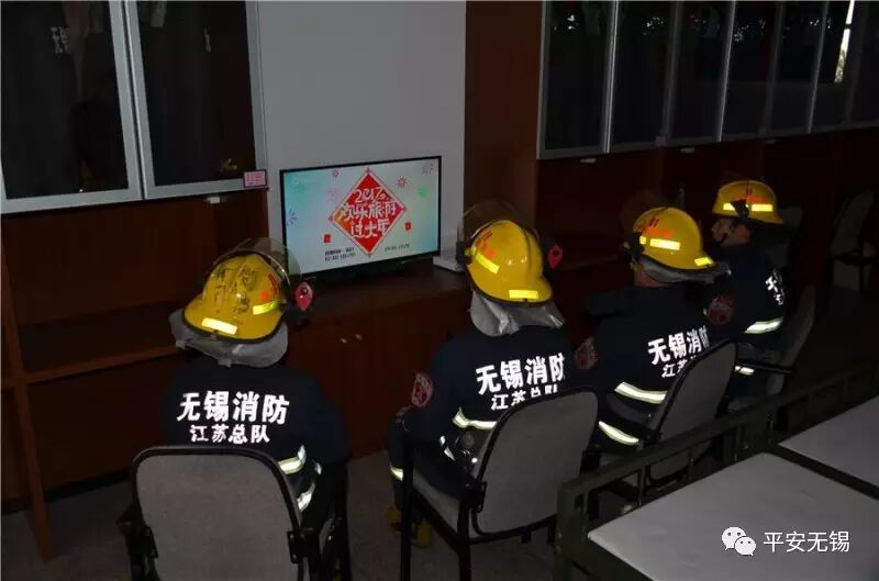 晚上20时,中队官兵全副武装坐在电视机前收看春节电视节目,这可不是他们在凹造型。在“春节模式”里,消防官兵们休息的同时也仍是处在备战状态的。战士们看电视时脸上非常惬意的表情,与身着20多斤的个人防护装备形成强烈对比反差。为确保能第一时间出警,备战时间里,吃饭、休息时都必须穿好消防服。战队老士官孙福全说:“我入警三十年,几乎没看过一回完整的春晚。”