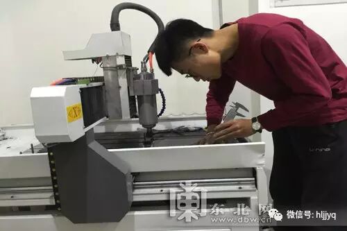 哈工大大学生创新创业园内,一名创业大学生正在机械加工平台作业。