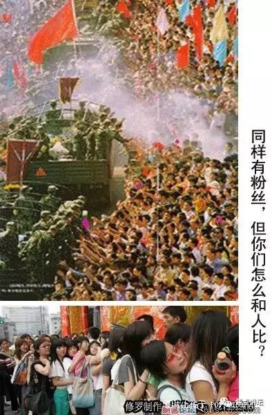 正如有人所说的,如果湖南电视台把一群狗拉去弄一个什么超级好狗之类的,应该也能弄出名。我们中国的军人就不像他们那么爱出名,可是我们的军人不用他们捧也一样的出名,并且是这些所谓的超女们没法比的。