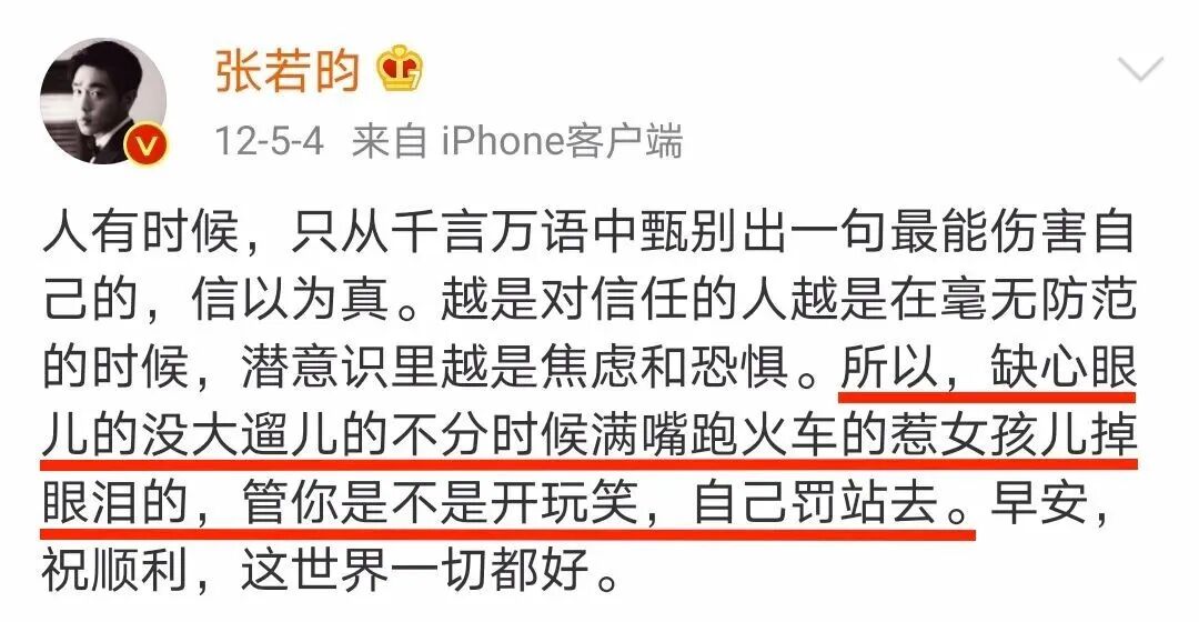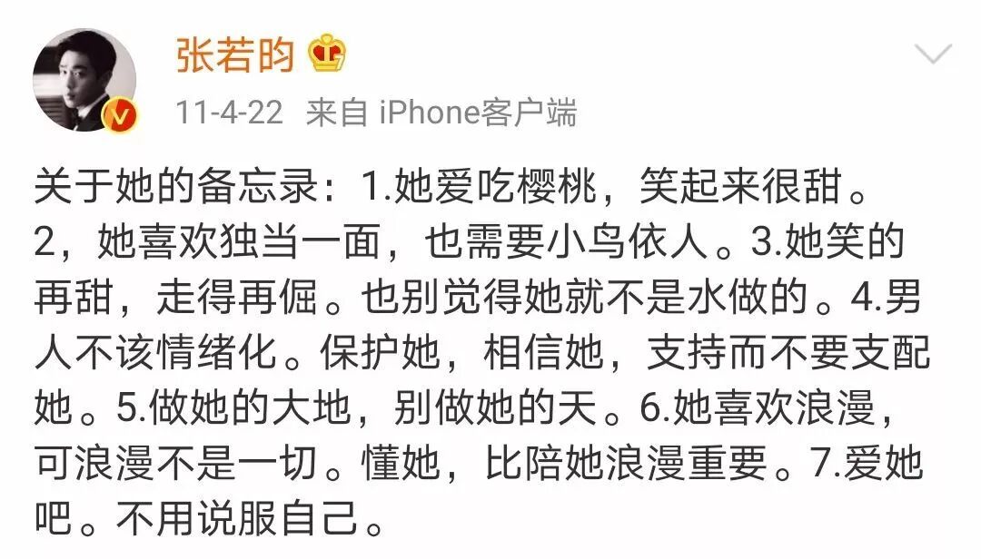 除了这段共同成长、一路相伴的感情之外,翻看张若昀过往的言论,我感慨于他对女性的尊重和对自我行为的约束。