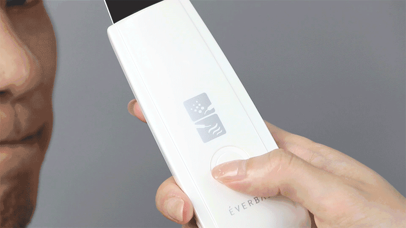 第一段是去皮模式(清洁模式)。这个时候就会听见机器发出超声波的声音,并开始震动。具有以往的毛孔清洁仪所不具备的超强清洁机能,可以將毛孔中的脏污推出。
