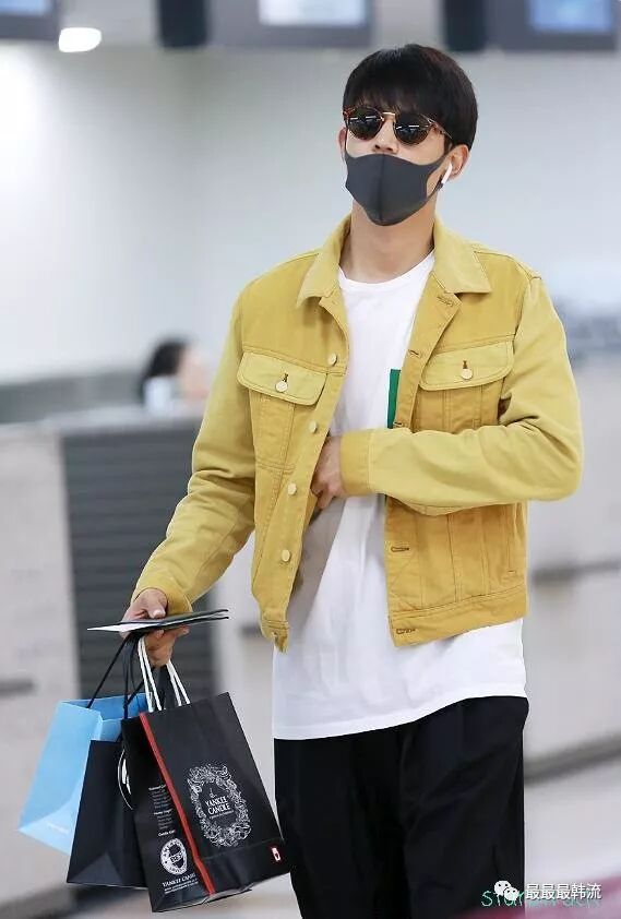 允浩的机场也选了亮黄色T恤,搭配了牛仔裤运动鞋。这一期黄色上衣真的很多!
