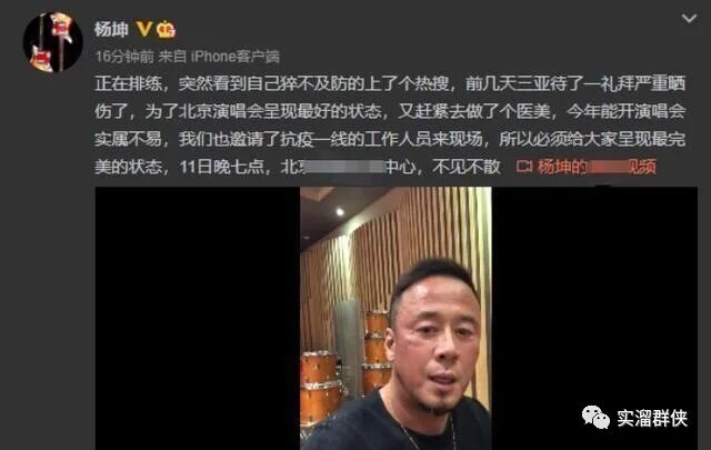 近期因为杨坤状态有些异样,就被别人质疑: