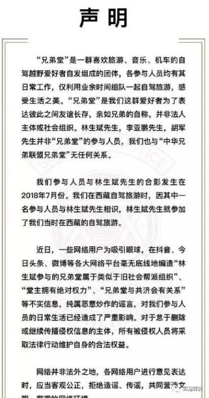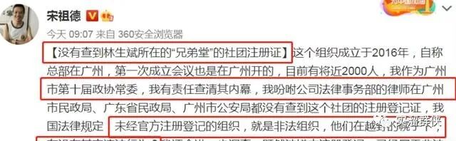 曾经,宋祖德曝光过林生斌和其他一些人参加过所谓的兄弟堂。
