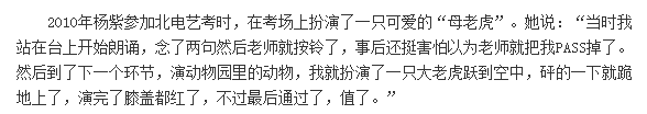 当时监考的老师回忆称,杨幂当时透明得像块水晶,而且在考场上丝毫不怯场,很有灵气,给他们留下了很深的印象。
