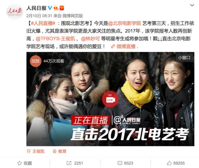提起年少成名的艺人来参加艺考,总能引来众多媒体和粉丝的关注。