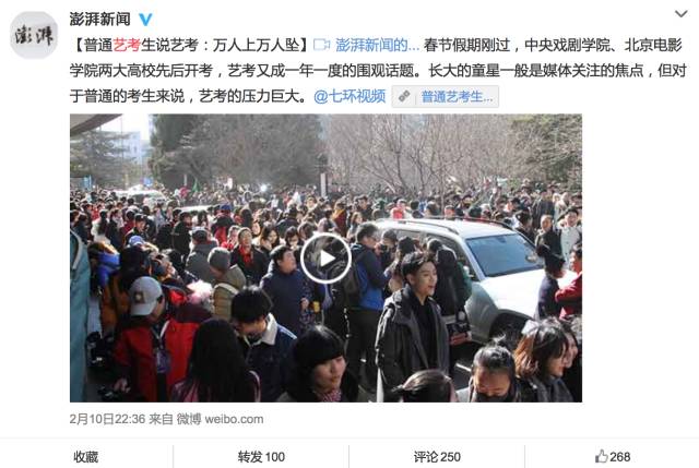 作为上面提到的明星所就读的北京电影学院,今年报考人数也是再创新高,号称“史上最难艺考”。