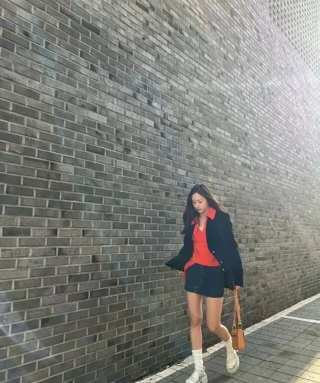 超短裙的搭配俏皮活泼,可以让一双又细又长的腿线一览无遗,欧尼瞬间化身行走的衣架子,一点不逊色于专业模特。