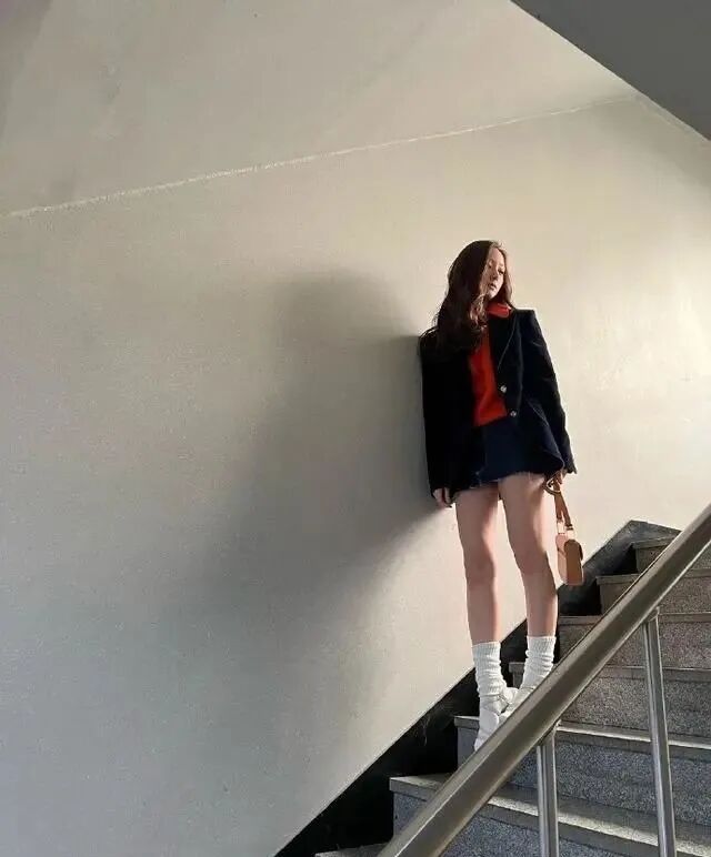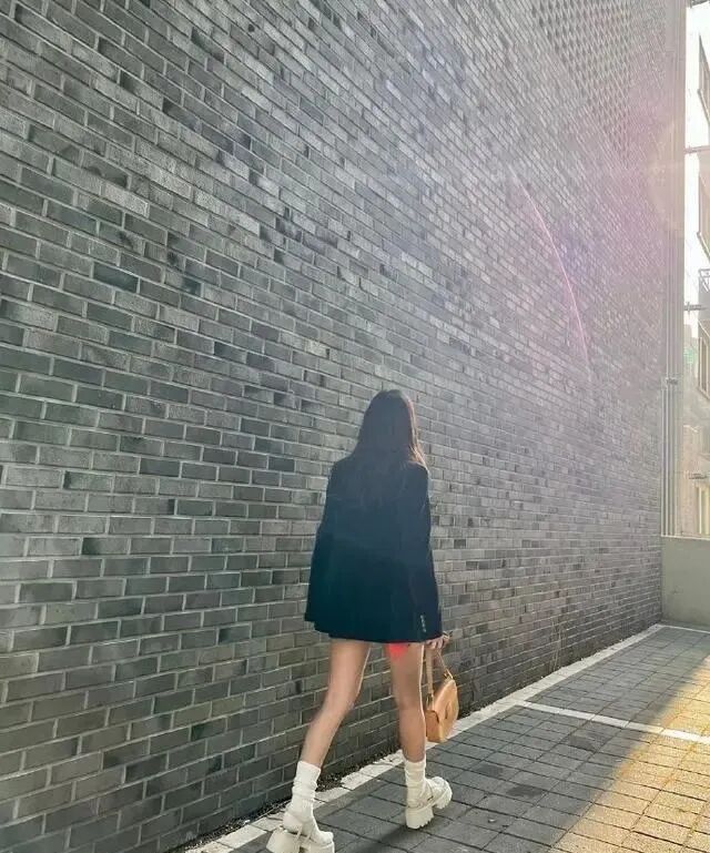 这个POSE也能作为假期旅游的拍照模版,角度选择得也不错,腰部以下全是大长腿,时尚感拿捏得稳稳的。
