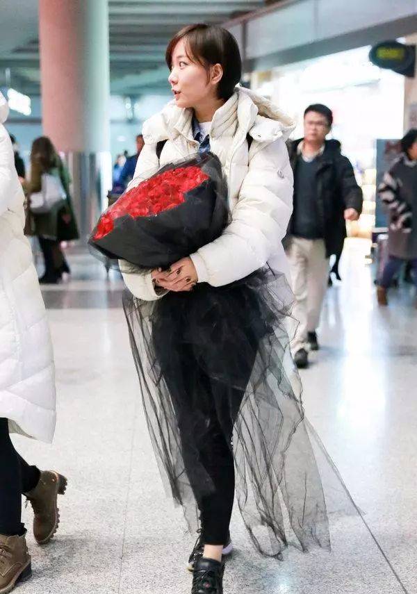 下身搭配一条黑色裤子,再穿一双黑色运动鞋,王珞丹这一身穿搭以休闲舒服为主呀。不过这样穿小腿看起来确实不如旁边的送花粉丝的细哦。