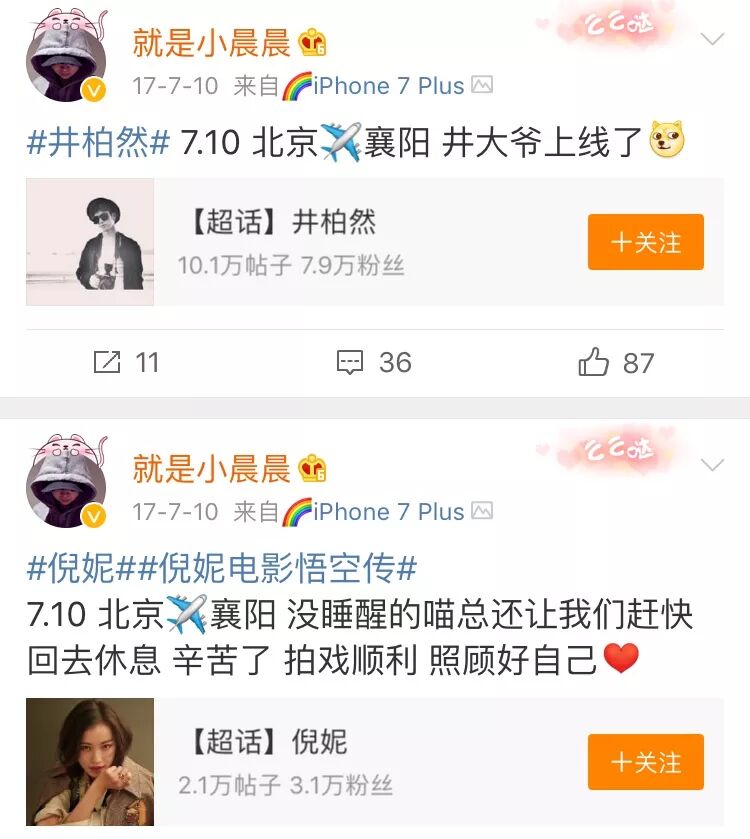 井柏然还不止一次去探班倪妮,除了行程单,还有网友在襄阳偶遇井柏然。