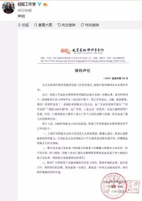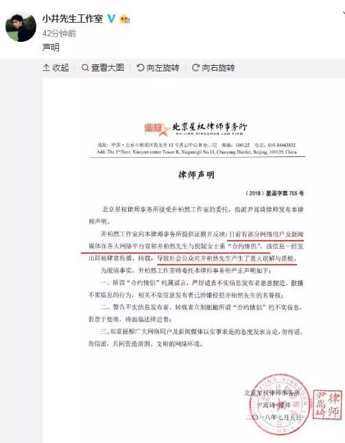 同时,两家工作室还发布了同一份律师声明,否认之前网上“合约情侣”的说法。