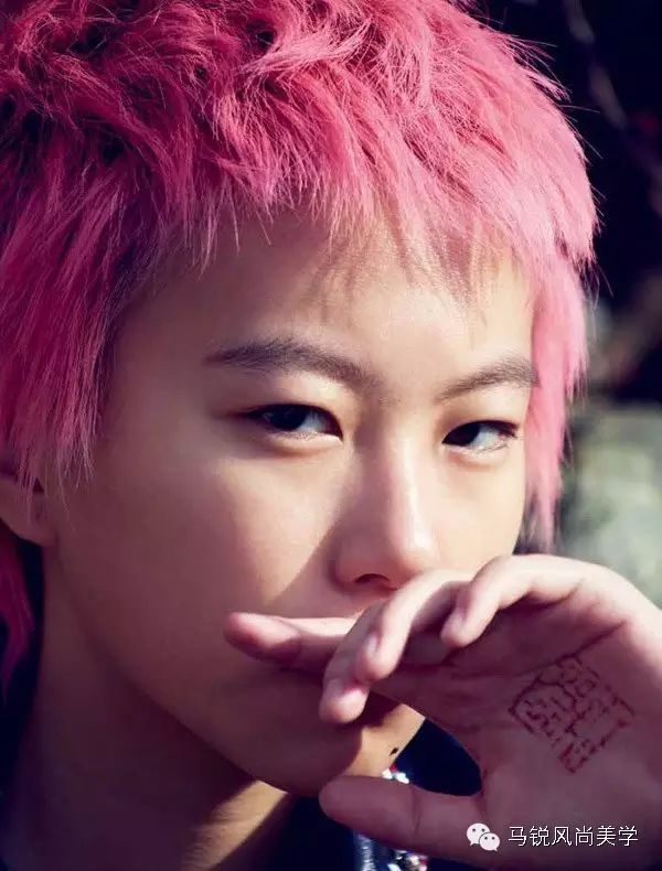 作为摇滚青年,窦靖童自然也没放过玫红这种张扬酷炫的发色。