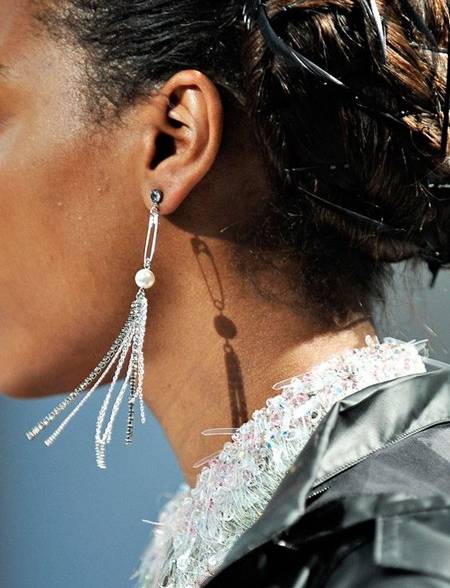 其实在2016年的秀场上,别针耳环就已经大行其道了。这是2016秋冬时装周的薇欧奈 (Vionnet)秀场照片。