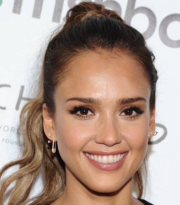 杰西卡·奥尔芭 (Jessica Alba) 也很喜欢佩戴别针耳环,这张照片戴的是镶钻款。